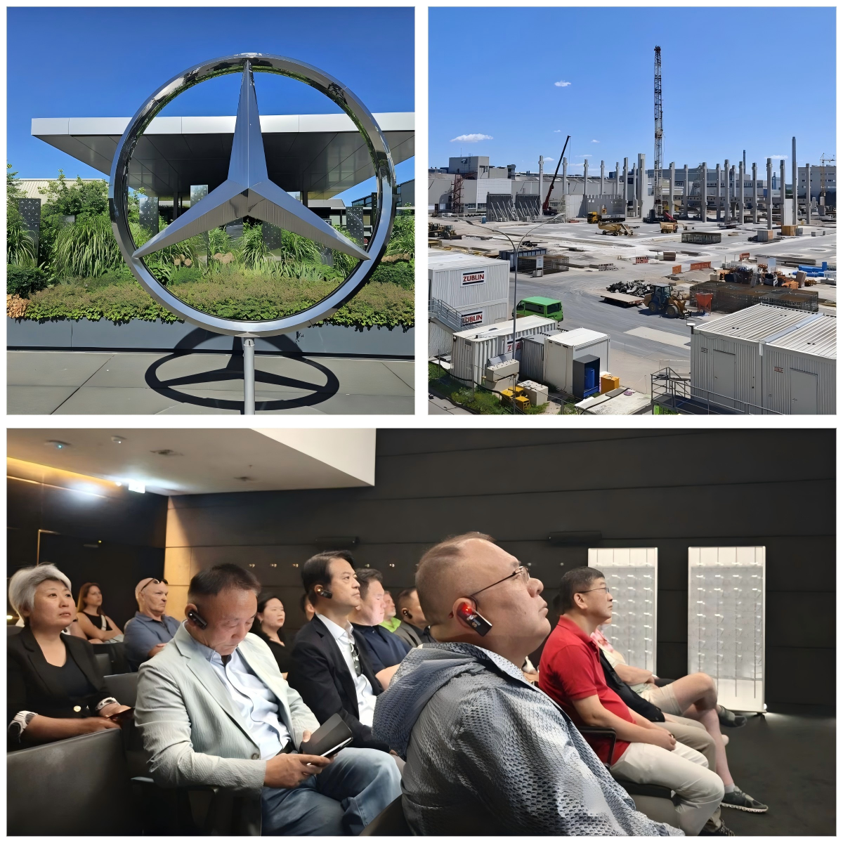 在世界最大的商用汽车跨国制造企业——梅赛德斯-奔驰的工厂,首先映入眼帘的是奔驰公司现代化的展厅。在工作人员陪同下,企业家们参观了高度自动化和智能化的生产车间。从零部件的生产到整车的组装,整个流程高效有序,同一条生产线可以根据客户的个性化需求进行定制生产,如颜色、配置、内饰等都可以根据订单进行调整。奔驰公司的品质管理、柔性化生产等令企业家们赞不绝口,既提供了宝贵经验,又打开了发展思路。