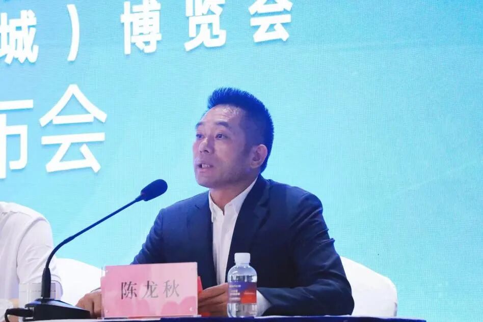 温州服装产业联盟主席、温州大象城董事长陈龙秋介绍时尚定制街区和国际定制(大象城)博览会概况。