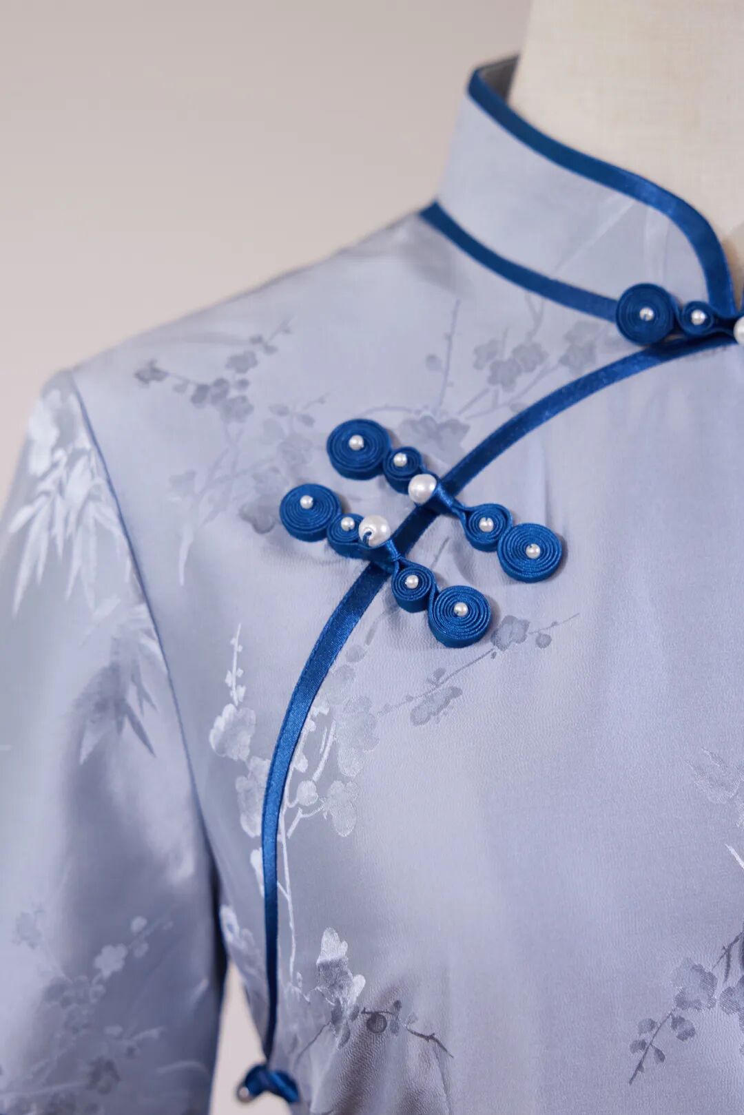 刚开始流行的旗袍则借鉴了高领上衣的衣领样式,为了保守唯恐衣领不紧,还特意在领子上加了一排漂亮的盘纽。许多人穿了这种旗袍后会感到呼吸不舒畅,颈脖转动不自如,因而不久就不流行了。