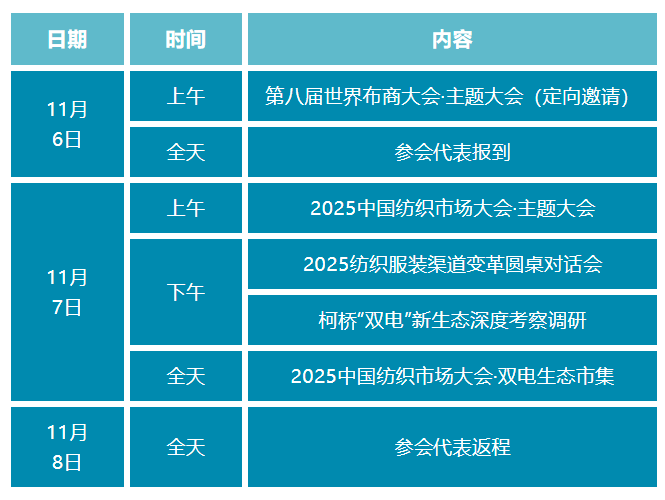 为深入贯彻国家关于推动数字技术与实体经济深度融合的战略部署,助力构建国内国际双循环相互促进的新发展格局。中国纺织工业企业管理协会定于11月6日-8日,在浙江省绍兴市柯桥区举办2025中国纺织市场大会。