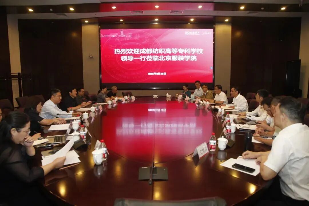 近日,中纺企协理事单位成都纺织高等专科学校校长孙锐带队到北京服装学院调研交流。北京服装学院院长贾荣林、副院长邹游等参加座谈交流会。
