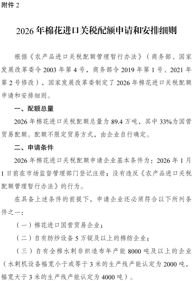 2.2026年棉花进口关税配额申请和安排细则